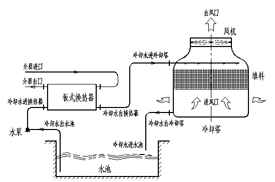 板式换热器+泵+冷却塔系统冷却工艺流程图
